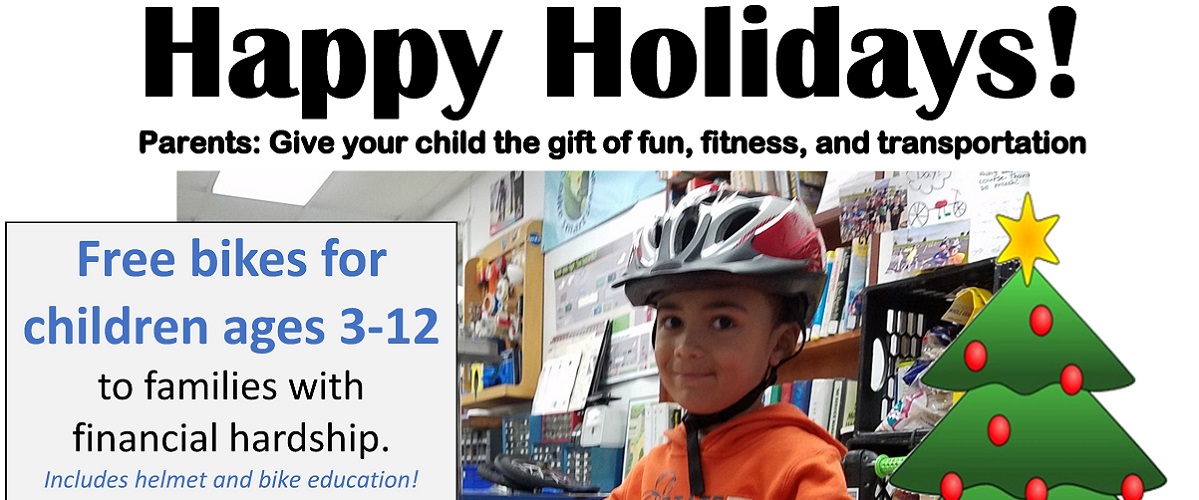 If you are an individual or local business interested to Sponsor a Holiday Bike, your support would be greatly appreciated to help cover the cost of parts and tools. Our goal is to rebuild 150 bikes for deserving families. Your name or organization will be passed along to the recipient when they receive the bike. You as an individual or business can leave whatever message you’d like to the recipient of your sponsorship. Sponsor a Holiday Bike here!