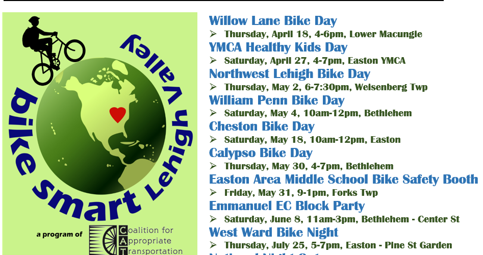 —-All visits are by appointment. Please contact us by phone 610-954-5744, email (cat@lvcat.org), or Facebook messenger to schedule your visit to volunteer or work on your bike project.